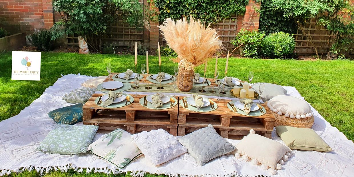 Price includes the following as standard, tables, cushions, cutlery, glasses/paper cups, plates/paper plates, cutlery, table mats, napkins, table runner, candles (adults), pampas flowers (adults)